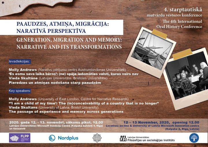 Latvijas Universitātes Filozofijas un socioloģijas institūta mutvārdu vēstures pētnieku rīkotā konference bija veltīta tam, lai projektā « Atmiņu pārnese starp paaudzēm: naratīvā perspektīva» (LZP projekts Nr. lzp-2018/1-0458) gūtās atziņas aplūkotu starptautiskā kontekstā. Konference notika attālināti, un tās laikā tika nolasīti 15 referāti, starp kuriem astoņi bija Latvijas pētnieku, septiņi – ārvalstu kolēģu – referāti.